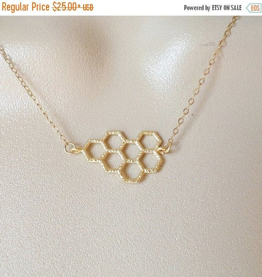 Gold Honeycomb Necklace - Gold Necklace - Geometric Necklace - Necklace - Honeycomb Necklace - Bridal Gifts - Christmas Gifts - Dainty