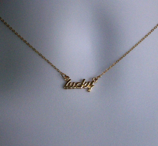Gold Lucky Necklace - Gold Lucky Word Necklace - Gold Filled Lucky Necklace - Small Lucky Pendant Necklace