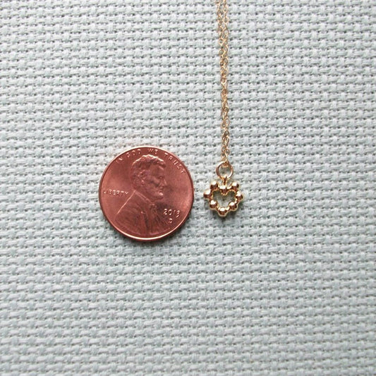 Gold Heart Necklace - Tiny Gold Studded Heart Necklace, Gold Filled Necklace, Bridesmaid gifts, Wedding, Bridal, Christmas Gift