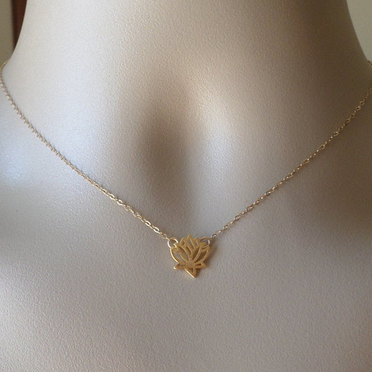 Gold Lotus Necklace - Tiny Gold Lotus Flower Necklace, Gold Filled Necklace, bridesmaid gifts, gold, yellow, Wedding, Mothers Day, Bridal