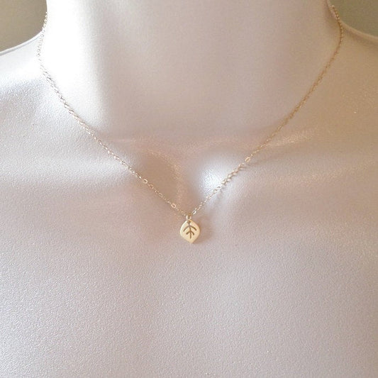 Gold Leaf Cutout Disc Necklace - Gold Disc Necklace - Tiny Gold Disc Necklace - Bridal Gifts - Christmas Gifts - Nature Jewelry