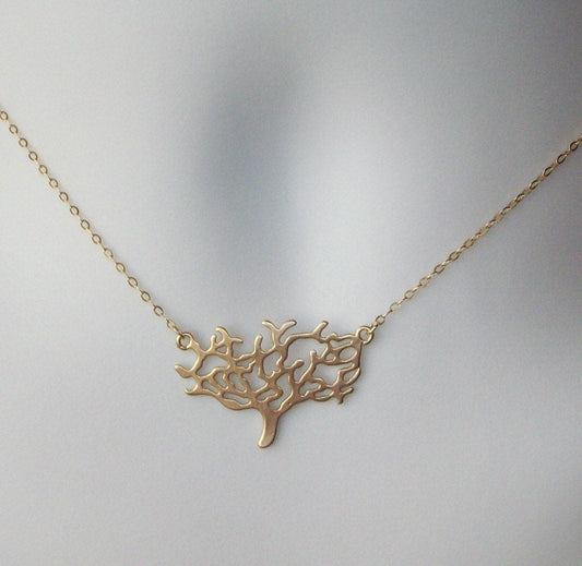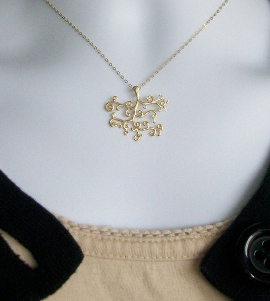 Gold Tree Necklace - Gold curly tree of life necklace, bridesmaid gifts, gold, yellow, orange, Valentines Day