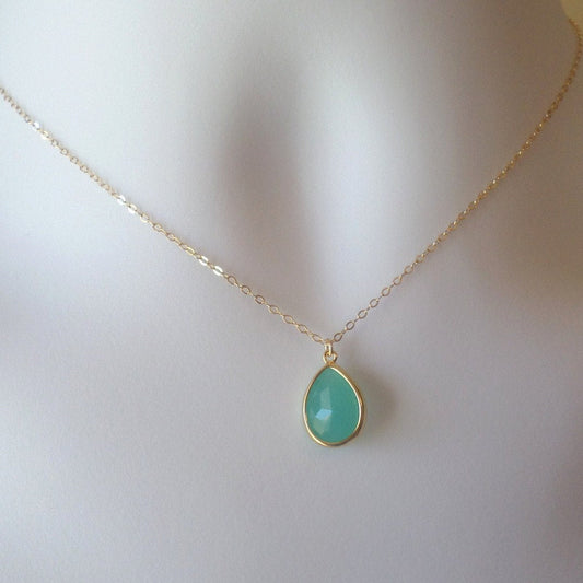 Mint Green and Gold Glass Stone Framed Necklace - Gold Necklace - Charm Necklace - Gold Jewelry - Birthday Gift - Christmas Gift