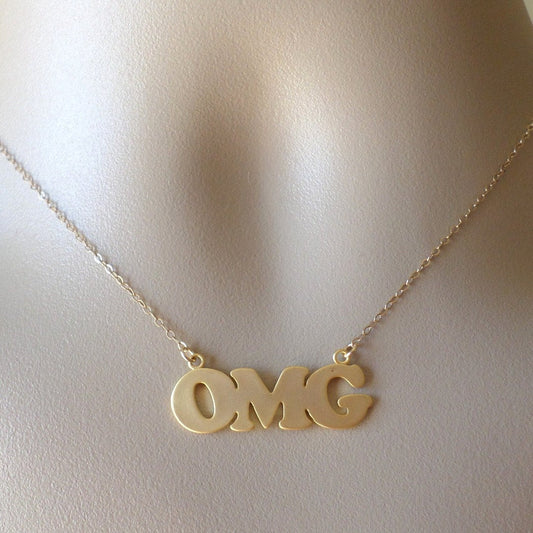OMG Necklace - Gold Word Necklace - Gold OMG Word Necklace - Gold Filled and Gold Plated Brass Necklace - Mothers Day Gift