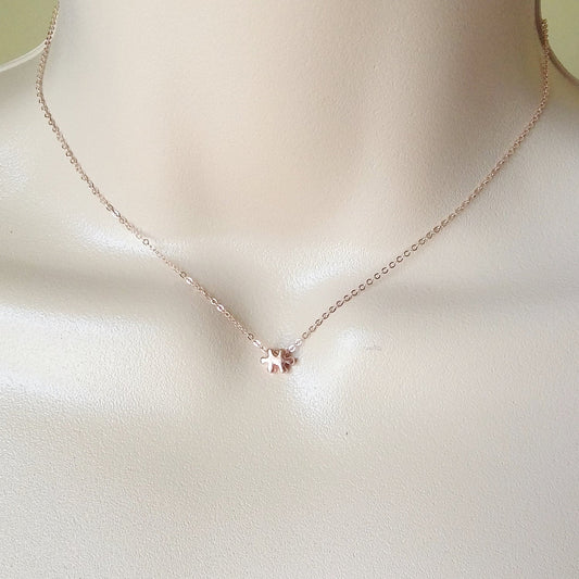 Rose Gold Puzzle Piece Necklace - Tiny Rose Gold Puzzle Piece Necklace, Rose Gold Filled Necklace, bridesmaid gifts, Wedding, Christmas Gift