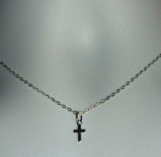 Tiny Cross Necklace - Sterling Silver and Tiny Cross Necklace, Sterling Silver Cross, grey, white, silver, Bridesmaid Gift, Wedding