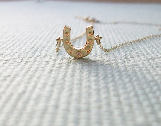 Tiny Horseshoe Necklace - Tiny Gold Horseshoe with Cubic Zirconia Necklace - Good Luck Necklace - Christmas Gift