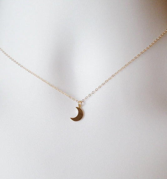 Tiny Flat Gold Moon Necklace - Crescent Moon Necklace - Gold Filled Moon Necklace - Small Moon Necklace