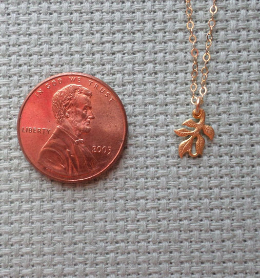 Tiny Gold Leaf Necklace - Gold Leaf Necklace - Leafy Necklace, Gold Filled Necklace, bridesmaid gifts, yellow, Wedding, Christmas Gift