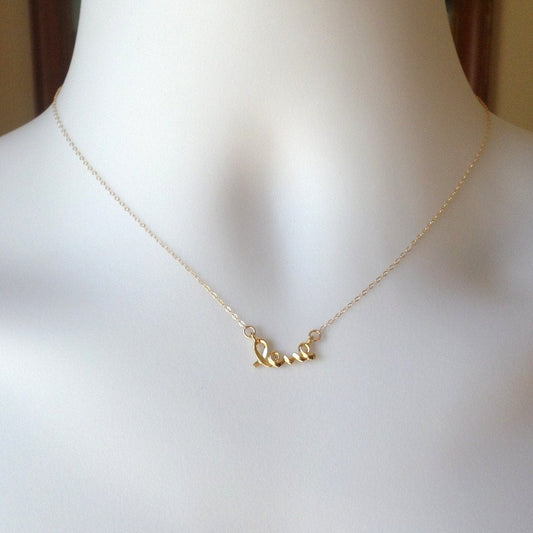 Tiny Gold Cursive Love Necklace - Gold Cursive Love Word Necklace - Bridesmaid Gifts - Christmas Gifts