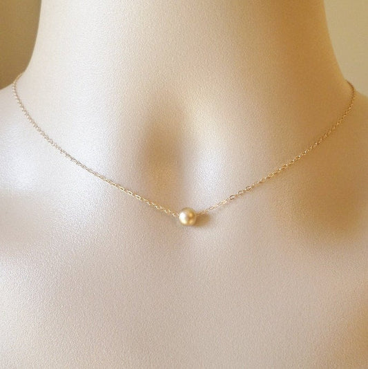 Tiny Gold Necklace - Round Gold Bead Necklace - Seamless Gold Bead Necklace - Smooth Gold Bead Necklace - Mothers Day Gift - Christmas Gift