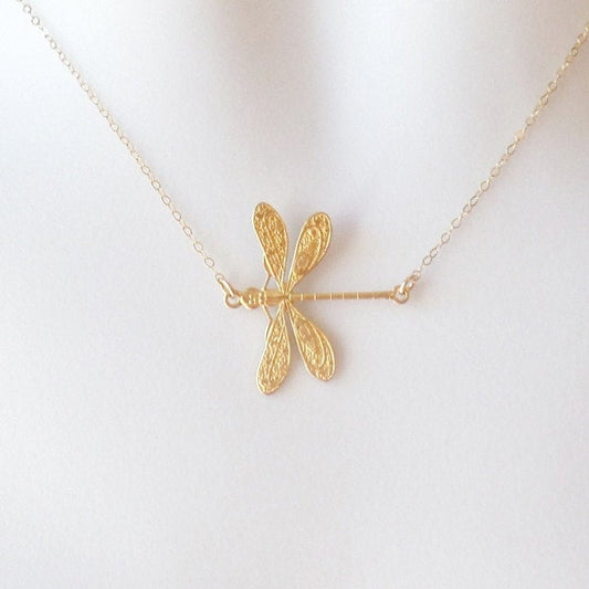 Dragonfly Necklace - Gold Dragonfly Necklace - Nature Inspired Jewelry - Insect Necklace - Bug Necklace - Christmas Gifts - Animal Jewelry