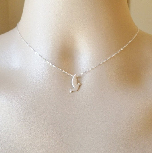 Dove Necklace - Silver Dove or Pigeon Necklace - Jewelry - Sterling Silver and Matte Rhodium Plated Necklace - Bridal - Mothers Day Gift