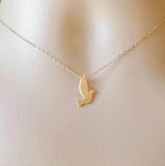 Dove Necklace - Gold Dove or Pigeon Necklace - Jewelry - Gold Filled and Matte Gold Plated Necklace - Bridal - Christmas gift
