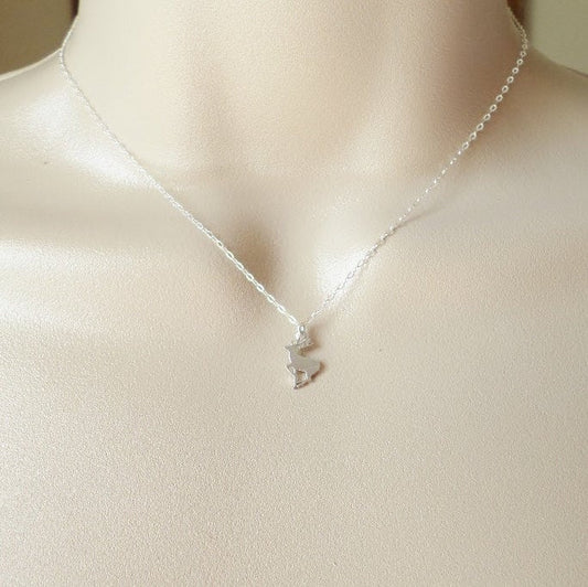 Deer Necklace - Tiny Buck Necklace - Silver Buck Necklace, Tiny Charm Necklace, Sterling Silver and Rhodium Plated Necklace, Christmas Gift