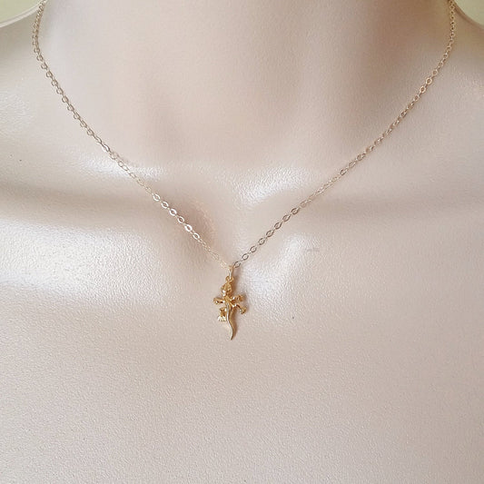Gecko Necklace - Gold Gecko Necklace - Tiny Gecko Necklace - Tiny Gold Gecko Necklace - Bridal Gifts - Christmas Gifts - Animal Jewelry