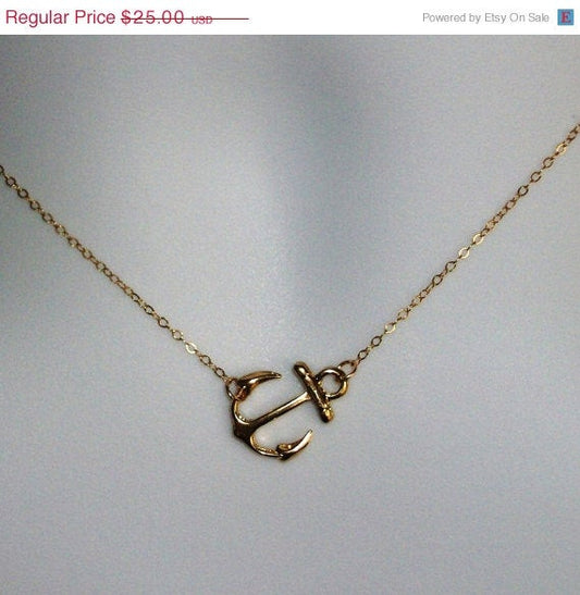 Gold Anchor Necklace - Sideways Anchor Necklace in Gold - Nautical Jewelry - Gold Nautical Charm - Navy Wife Jewelry - Anchor Necklace