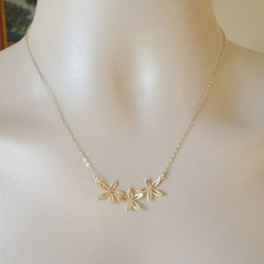 Flower Necklace - Gold Necklace - Gold Flower Jewelry - Triple Flower Necklace - Gold Plated and Gold Filled Necklace - Mothers Day Gift