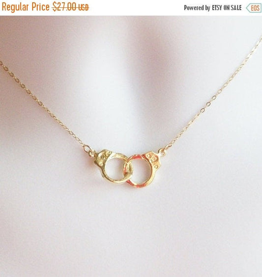 Gold Handcuff Necklace - Handcuff Pendant Necklace - Gold Filled Necklace - Handcuff Steampunk Necklace - Steampunk
