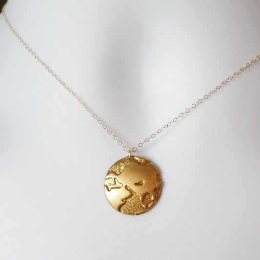 Gold Globe Necklace - Gold Round 1/2 Globe Charm Necklace - United States Gold Necklace - Gold Necklace - Christmas Gifts