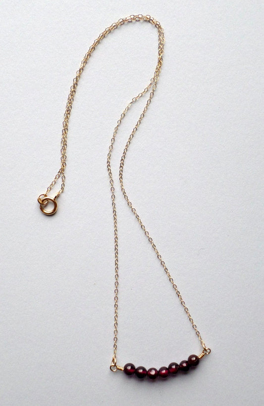 Gold Garnet Necklace - January Birthstone Jewelry - Tiny Gold Curved Bar Gemstone Necklace - Gemstone Necklace - Christmas Gift