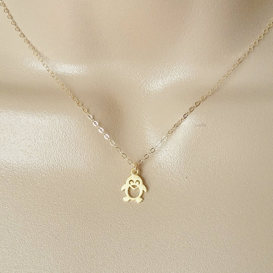 Penguin Necklace, Gold Penguin Necklace, Tiny Penguin Necklace, Gold Filled Necklace, Tiny Necklace, Gift Ideas for Her, Christmas Gift Idea