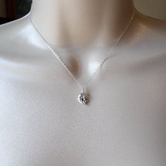 Silver Moon Necklace - Moon and Frog Necklace - Tiny Moon Necklace - Sterling Silver Necklace- Mothers Day Gift - Weddings - Bridesmaid Gift