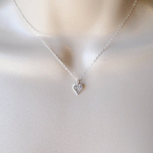 Heart Necklace, Silver Heart with Paw Print Cutout Necklace, Sterling Silver Necklace, Layering Necklace, Christmas Gift, Mothers Day Gift