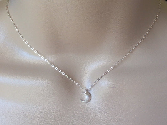 Silver Moon Necklace - Crescent Moon Necklace - Tiny Moon Necklace - Sterling Silver Necklace - Weddings - Bridesmaid Gift - Christmas Gift