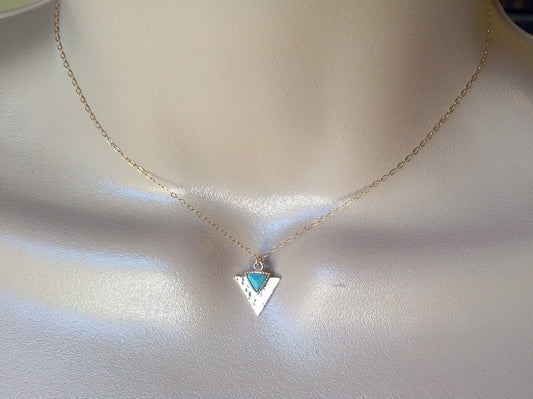 Turquoise Triangle Necklace, Gold Hammered Triangle and Turquoise Necklace, Geometric Necklace, Tiny Necklace, Gold Necklace, Mothers Day
