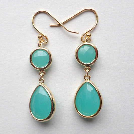 Mint Framed Glass Chandelier Earrings - Mint Green Earrings - Gold Earrings - Graduation Present - Christmas Gift