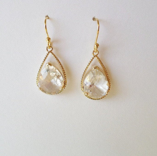 Clear Crystal and Gold Chandelier Earrings - Crystal Earrings - Gold Earrings - Birthstone Jewelry - Mothers Day Gift