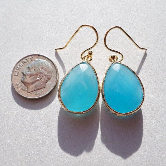 Ocean Blue Earrings - Gold and Blue Earrings - Gold Earrings - Blue Earrings - Drop Earrings - Gold Framed Blue Earrings - Christmas Gifts