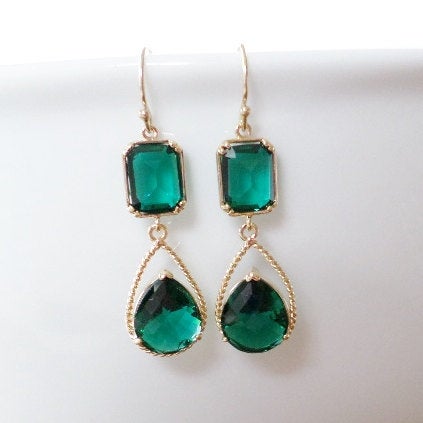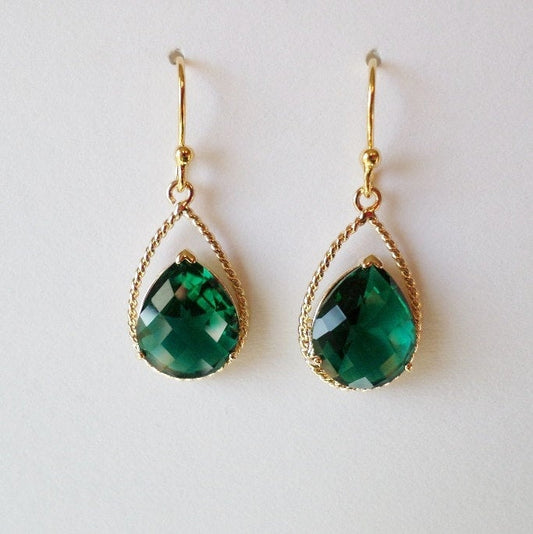 Gold Earrings - Emerald Earrings - Emerald and Gold Earrings - Gold Earrings - May Birthstone - Birthstone Earrings - Graduation Present