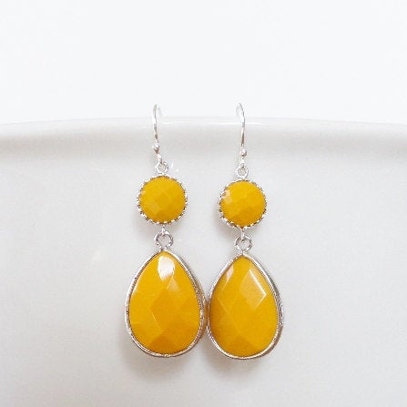 Silver Earrings, Yellow Earrings, Framed stone earrings, Drop Earrings, Gold Earrings - Bridal - Weddings - Mothers Day Gifts