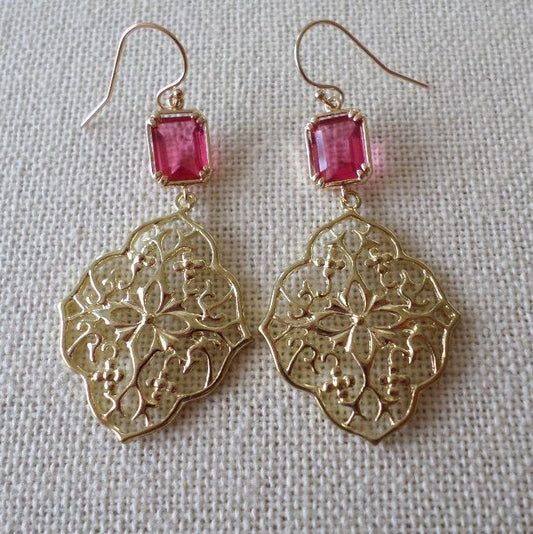 Gold Earrings-Gold Filigree Earrings-Dangle Earrings-Gold Filled Filigree Earrings-Drop earrings-Chandelier Earrings