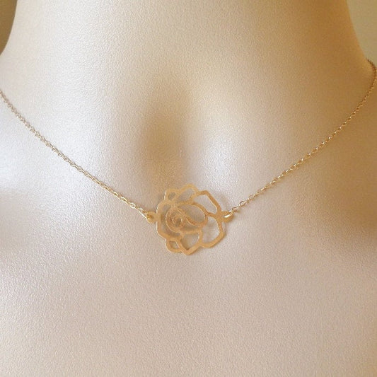 Rose Necklace - Gold Rose Connector Necklace - Small or Large Rose Necklace- Gold Necklace - Gold Flower Jewelry - Christmas Gift