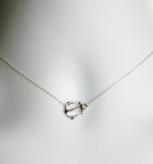 Sideways Silver Anchor Necklace - Sterling Silver and Rhodium Plated Sideways Silver Anchor Necklace, Nautical Jewelry, Navy Wife Jewelry