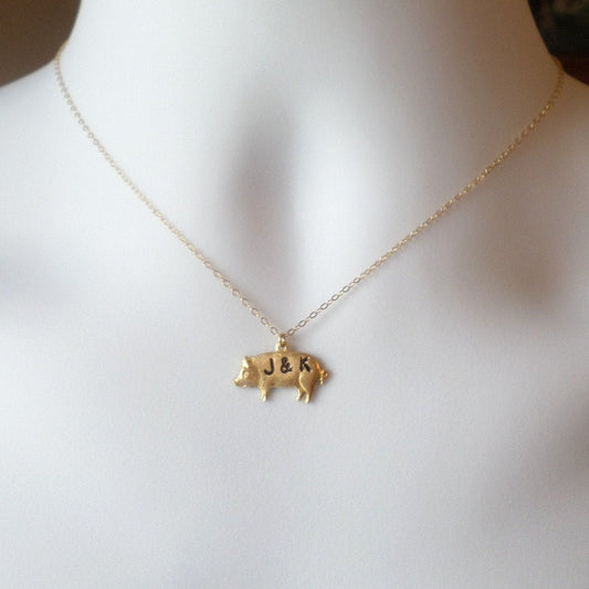Pig Necklace- Gold Pig Necklace - Mongrammed Necklace - Personalized Necklace - Hand Stamped Jewelry - Christmas Gift