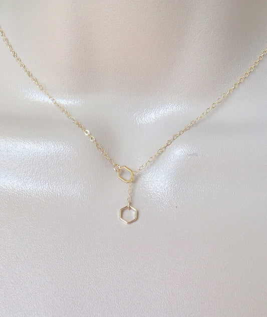 Octagon Lariat Necklace, Gold Octagon Lariat Necklace, Tiny Lariat Necklace, Lariat Necklace, Bridal Gifts, Layering Necklace, Mothers Day