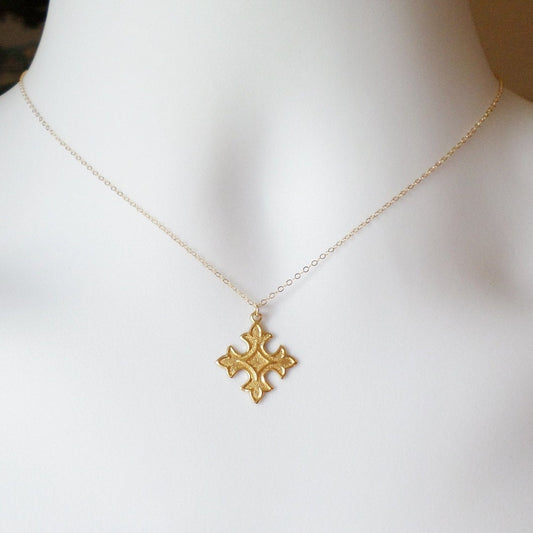 Gold Cross Necklace - Celtic Style Cross Necklace, Gold Filled Necklace, bridesmaid gifts, gold, yellow, Wedding, Mothers Day, Bridal