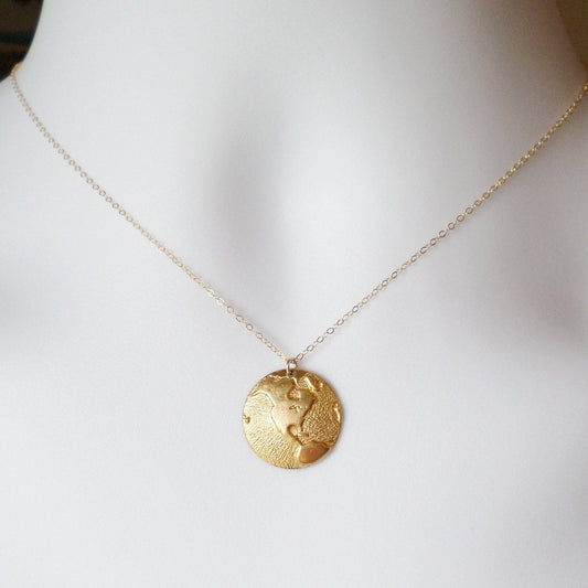 Gold Globe Necklace - Gold Round 1/2 Globe Charm Necklace - United States Gold Necklace - Gold Necklace - Christmas Gifts