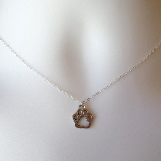 Silver Dog Paw Necklace - Sterling Silver Dog Paw Necklace - Animal Jewelry - Silver Plated Dog Paw Necklace