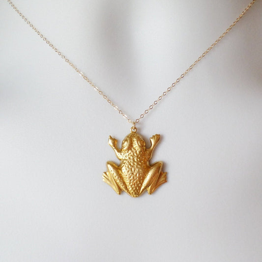 Gold Frog Necklace - Frog Necklace, Gold Filled Necklace, Animal Jewelry, Christmas Gift, Steampunk Jewelry