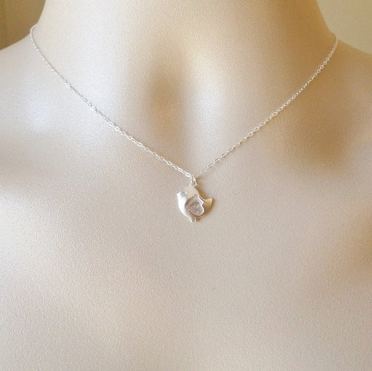Silver Blue Bird Necklace - Fat Bluebird Necklace - Bird Necklace - Sterling Silver and Silver Plated Necklace - Bridal - Mothers Day Gift