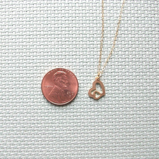 Gold Heart Necklace - Tiny Gold Cutout Double Heart Necklace, Gold Filled Necklace, Bridesmaid gifts, Wedding, Bridal, Valentines Day