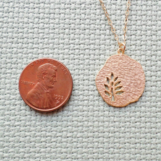 Gold Leaf Cutout Disc Necklace - Gold Disc Necklace - Tiny Gold Disc Necklace - Bridal Gifts - Christmas Gifts - Nature Jewelry