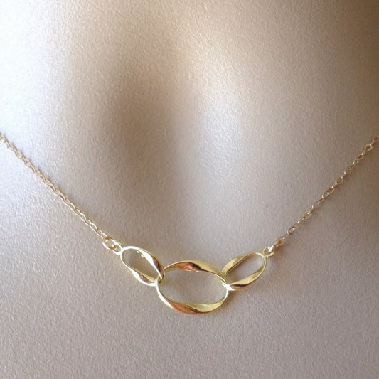 Gold Eternity Necklace - Interlocking Eternity Circles Necklace - Past, Present and Future - Bridesmaid gifts, Wedding, Bridal, Mothers Day