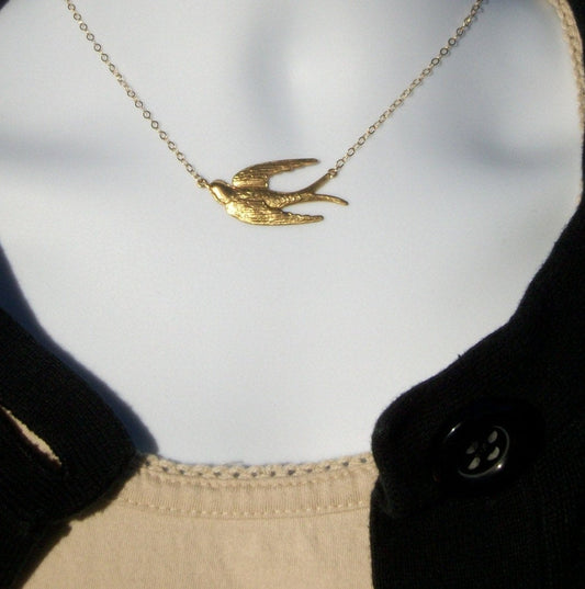 Gold Swallow Necklace - Soaring Swallow Necklace, Gold Filled Necklace, bridesmaid gifts, gold, yellow, Wedding, Mothers Day, Bridal