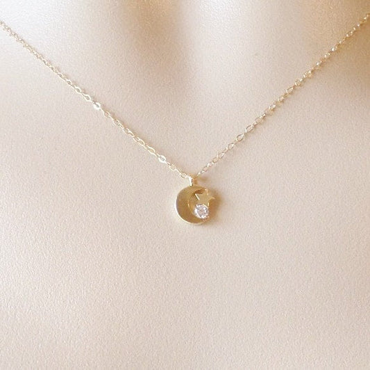Gold Moon, Star and Cubic Necklace - Crescent Moon Necklace - Gold Filled Moon Necklace - Small Moon Necklace - Valentines Day